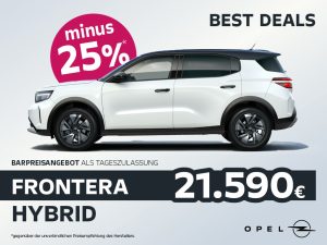 Kombinierte Werte gem. WLTP*: Frontera Electric: Energieverbrauch: 16,5-18,3 kWh/100 km; CO₂-Emission 0 g/km; CO₂-Klasse: A; E-208: Energieverbrauch 16,1 kWh/100 km; CO₂-Emission 0 g/km; CO₂-Klasse: A; B10: Energieverbrauch 17,3 kWh/100 km; CO₂-Emission 0 g/km; CO₂-Klasse: A.